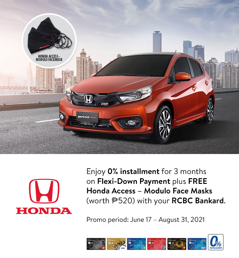 - Cardholders can avail of the following offers using their RCBC Bankard at participating Honda Cars Philippines branches during the promo period: