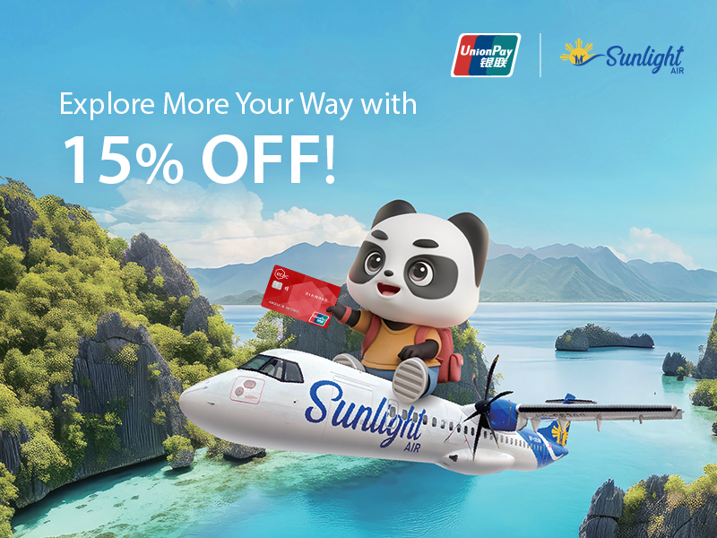 - All RCBC UnionPay Credit Cardholders are eligible for the Promotion at Sunlight Air and/or outlets (if any), unless otherwise specified and subject to the acceptance of UnionPay Cards.