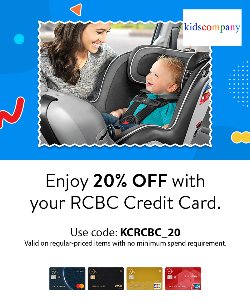- Cardholders can avail of 20% OFF on regular-priced items via https://kidscompany.com.ph with no minimum spend required using their RCBC Credit Card and promo code KCRCBC_20 during the promo period.