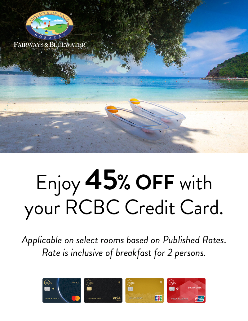 - Full immediate pre-payment is required to confirm the booking. Payment must be made via the online secure payment link sent by Fairways & Bluewater Boracay, using eligible RCBC Credit Cards only.