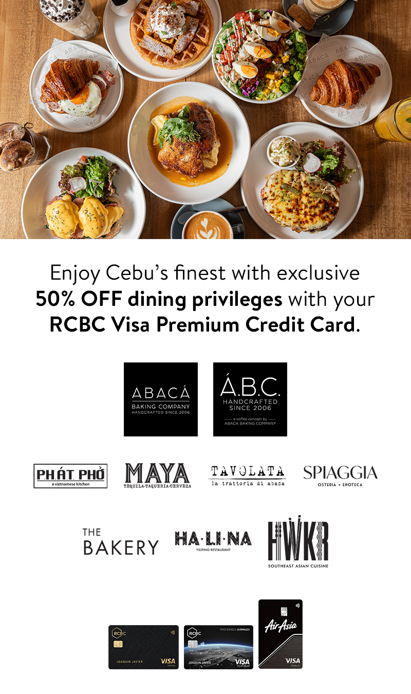 | Abaca Baking Company All Day Dining Restaurant | 50% OFF on buffets and à la carte For buffet: Minimum of 2 and a maximum of 6 diners For à la carte: Minimum spend of ₱3,000 and a maximum discount of ₱2,500 |
