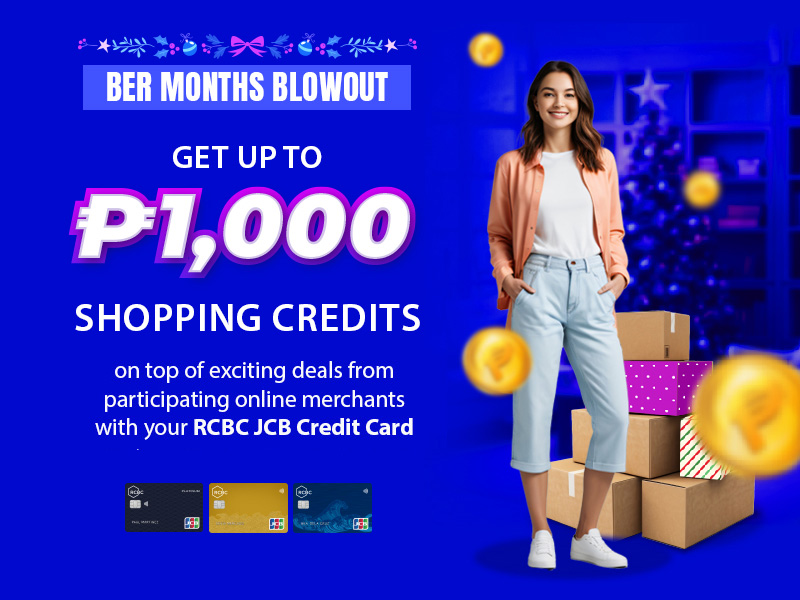 A single or accumulated online spending using an RCBC JCB Credit Card entitles a cardholder to earn up to ₱1,000 SHOPPING CREDITS. The minimum spend to earn a Shopping Credit is ₱5,000.