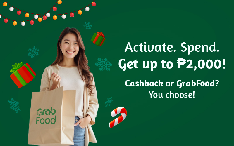 - Qualified cardholder is entitled to receive up to ₱2,000 CASHBACK or GrabFood eVoucher for single-receipt or accumulated, straight or installment purchases of ₱25,000 & up using the qualified card.