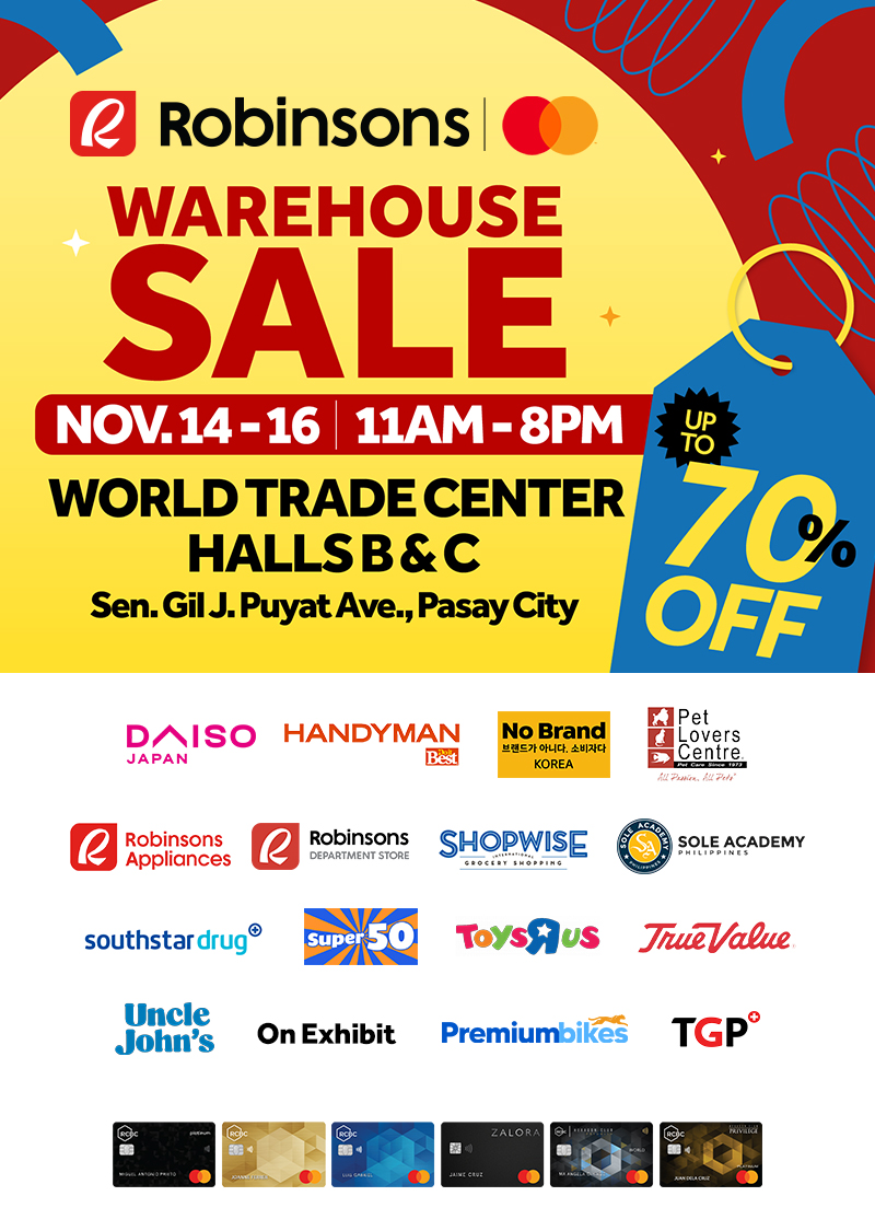 Bring and present your RCBC Mastercard Credit Card to enter and shop during the sale at the World Trade Center on November 14-16, 2025, from 11:00 AM -8:00 PM.