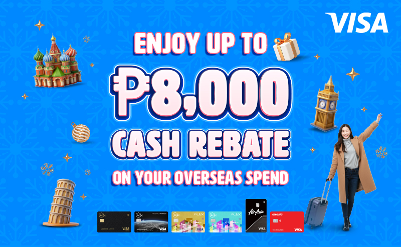 - Use your RCBC Visa Credit Card for in-store overseas transactions from December 5, 2025, to January 31, 2026, and receive up to ₱8,000 CASH REBATE for your accumulated spend! Please refer to the details in the mechanics below.