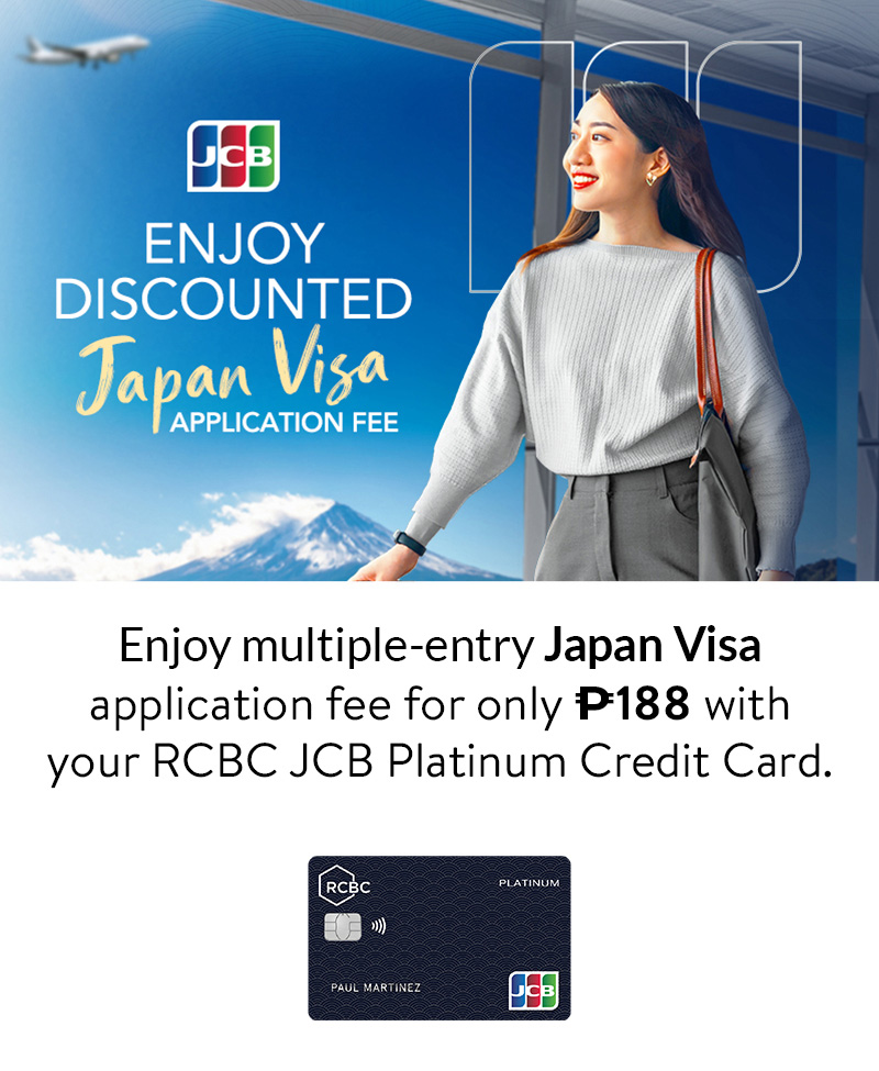 - Applicable to multiple-entry Japan Visa Processing fee only. Only the RCBC JCB Platinum Credit Cardholder is eligible to avail of the promo offer.