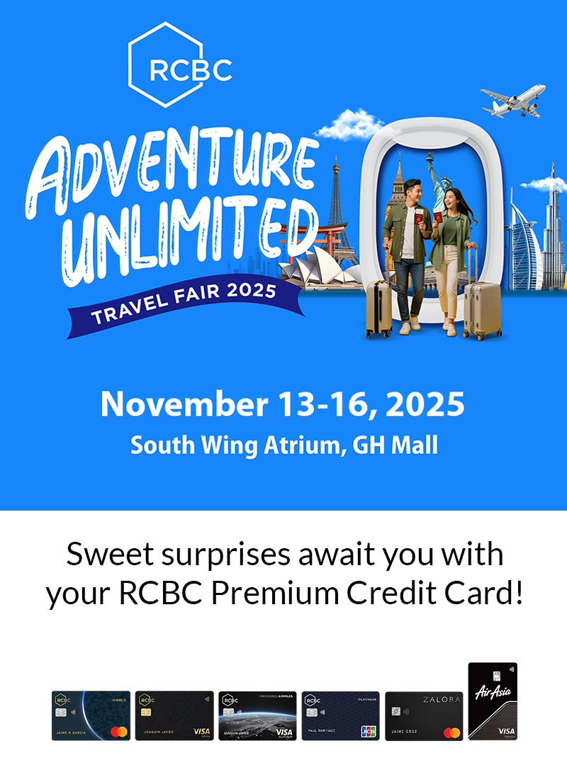 Use your RCBC Premium Credit Card for your travel bookings at the Fair and enjoy exclusive treats: