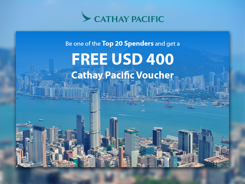 - The Top 20 Spenders during the promo period are qualified to receive Cathay Pacific Vouchers, applicable to all Hong Kong flights/base fares.