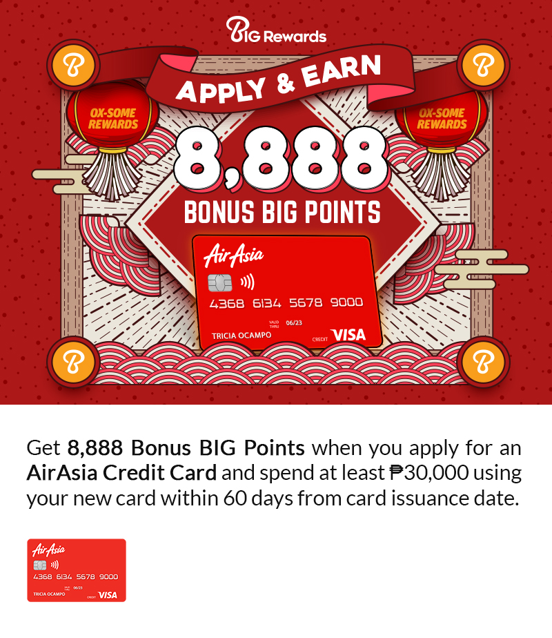 *Upon meeting the required minimum spend, cardholder has to register at www.rcbcbankard.com/airasia-form in order to redeem the Welcome BIG Points.