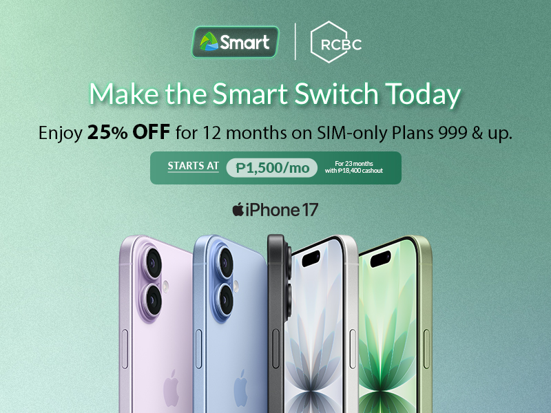 - 25% OFF on Smart Postpaid SIM-only Plan or save up to ₱7,497 when you enroll in Smart Auto-Charge Agreement for 12 months