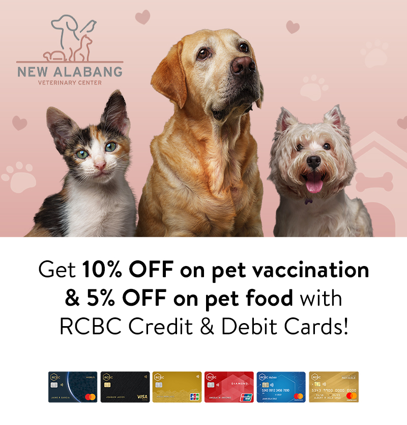 - Promo is not valid in conjunction with existing promotional offers of RCBC and New Alabang Veterinary Center.