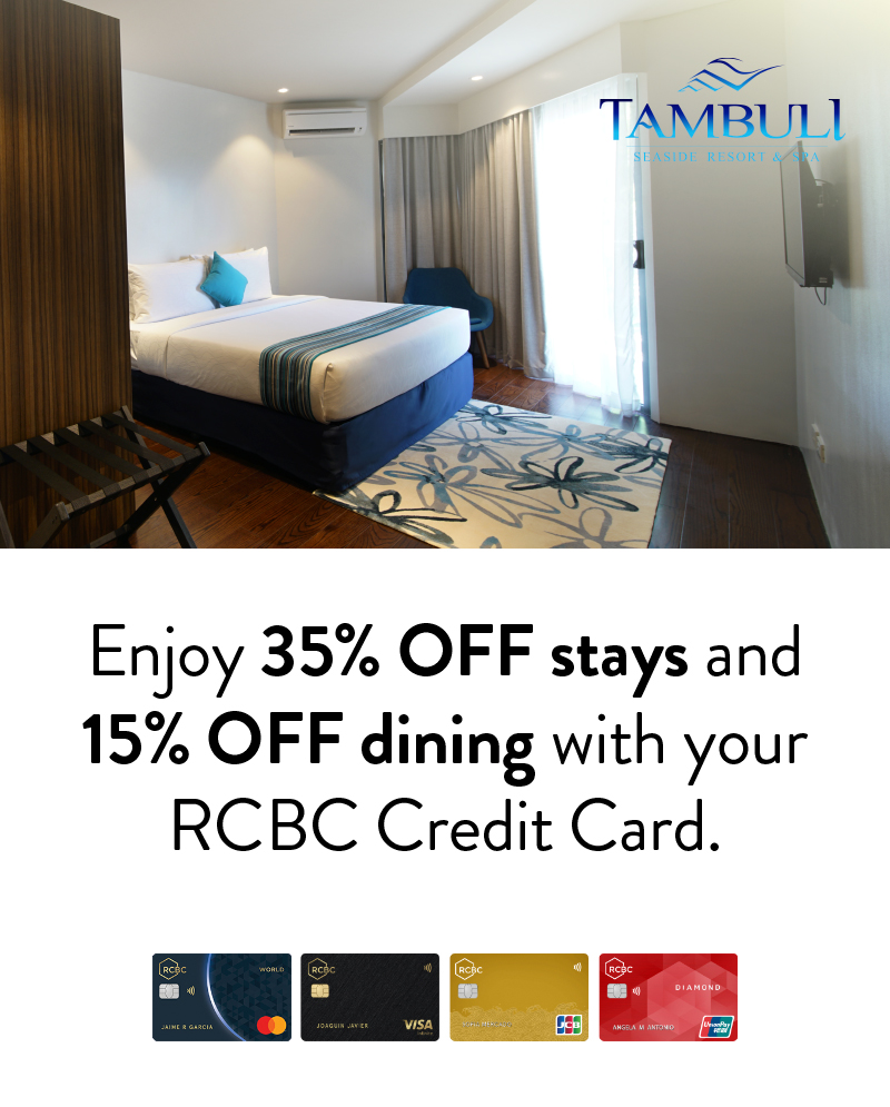 Stay period is until March 15, 2027. - Cardholders can enjoy the following offers at Tambuli Seaside Resort and Spa using their RCBC Credit Cards during the promo period: