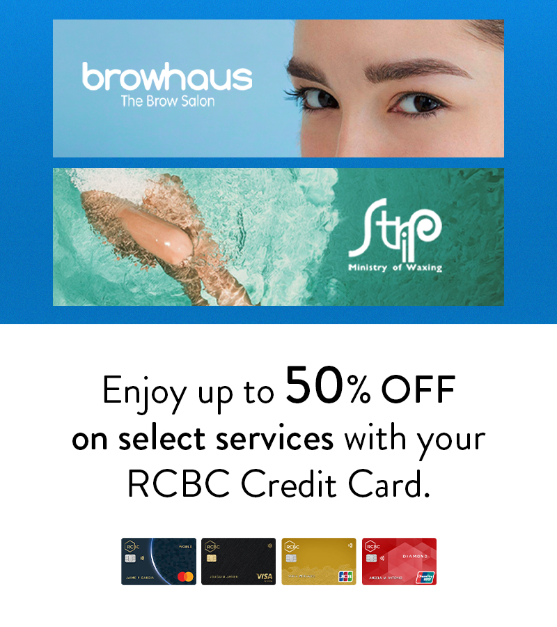 - Cardholders can avail of the following offers at Browhaus and Strip using their RCBC Credit Cards during the promo period: