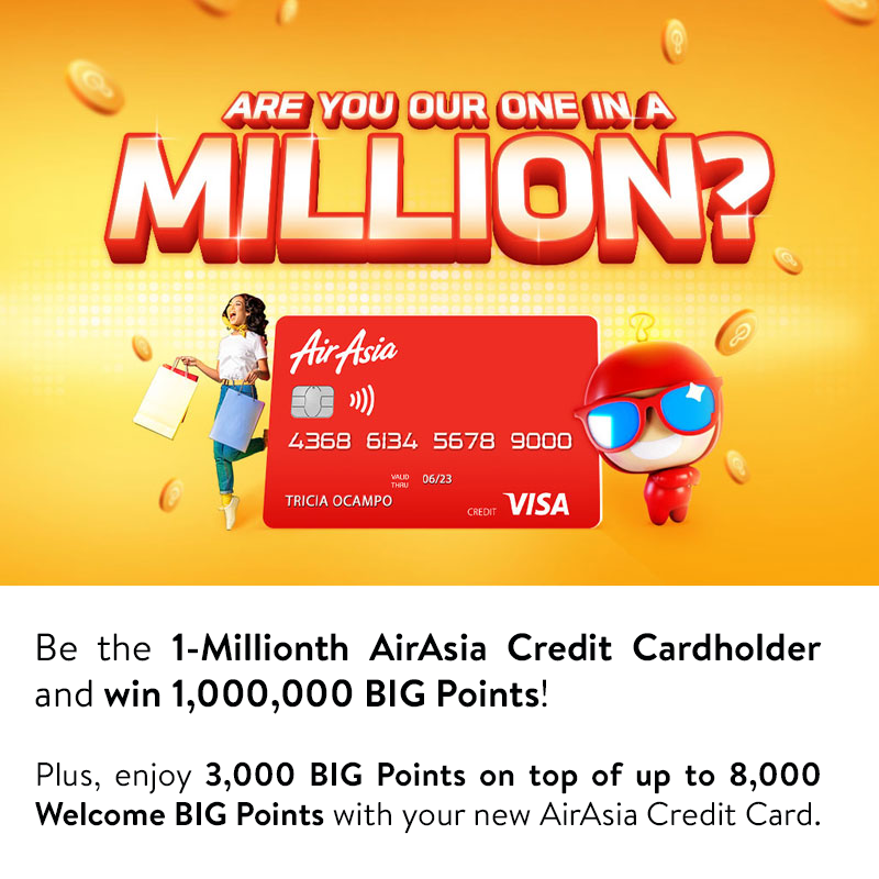 6. In addition to the Bonus BIG Points, the first Participant whose Card application is successfully approved by the Bank during the Campaign Period once the total number of BIG Members holding the AirAsia Card issued by RCBC, PT Bank Permata, Hong Leong Bank and/or Bangkok Back reaches 1 million (in cumulative within the territories of Malaysia, Indonesia, Philippines and Thailand) will be entitled to win a prize of 1,000,000 BIG Points (“Prize”).The cardholder whose Card got approved closest to the 1 million-mark will be the winner. The winner will be selected within fourteen (14) days from promo end date at 5PM in the presence of a DTI Representative.