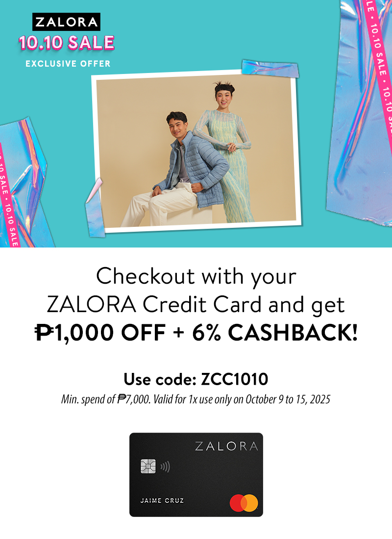 - Eligible ZALORA Credit Cardholders can get ₱1,000 OFF (“Offer”) at ZALORA for a min. single-receipt spend of ₱7,000 with Promo Code ZCC1010. The code is only valid for one-time use during the promo period.