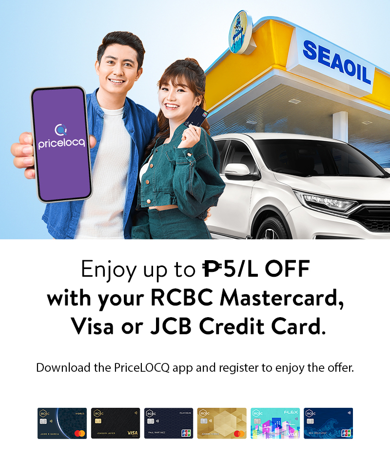 - The promo is not valid in conjunction with any other ongoing promo at SEAOIL, PriceLOCQ, or RCBC Credit Cards, unless otherwise indicated.